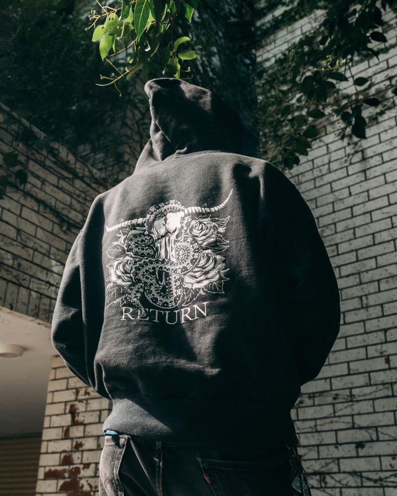 BULL SNAKE BLACK WHITE ZIP HOODIE